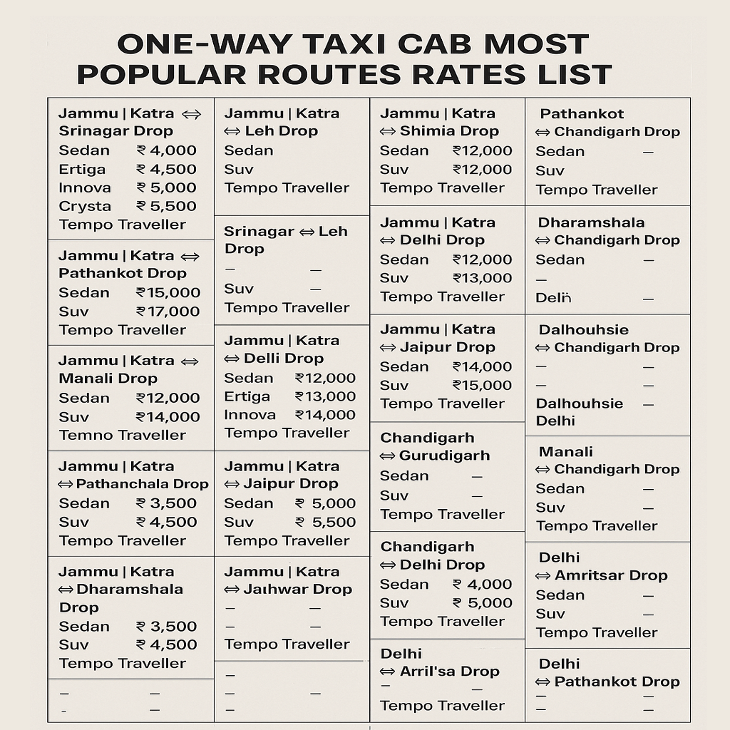 Competitive pricing and transparent fares noted by several users for various taxi services in Katra.
